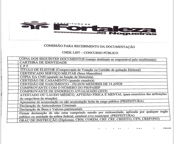 CHEK LIST CONCURSO PÚBLICO - DOCUMENTAÇÃO QUE SERÁ RECEBIDA E ANALISADA PELA COMISSÃO NO ATO DA POSS...