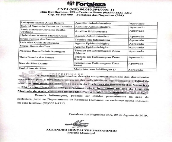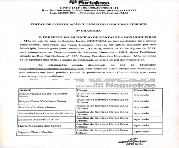 PREFEITURA DE FORTALEZA DOS NOGUEIRAS FAZ A CONVOCAÇÃO DA SEGUNDA CHAMADA DOS APROVADOS NO CONCURSO...