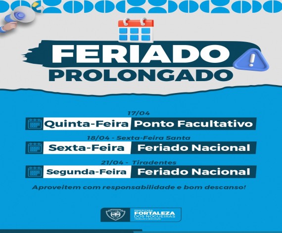 Atenção, população!\nInformamos que, devido ao feriado prolongado, não haverá expediente na Prefeitu...