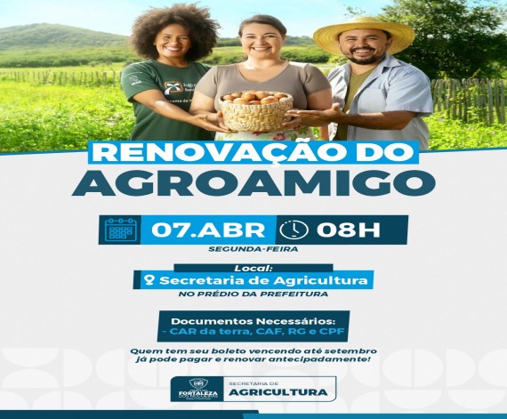 Produtor, atenção! \nA Renovação do Agroamigo será nesta segunda-feira, dia 07 de abril, às 08h, na...
