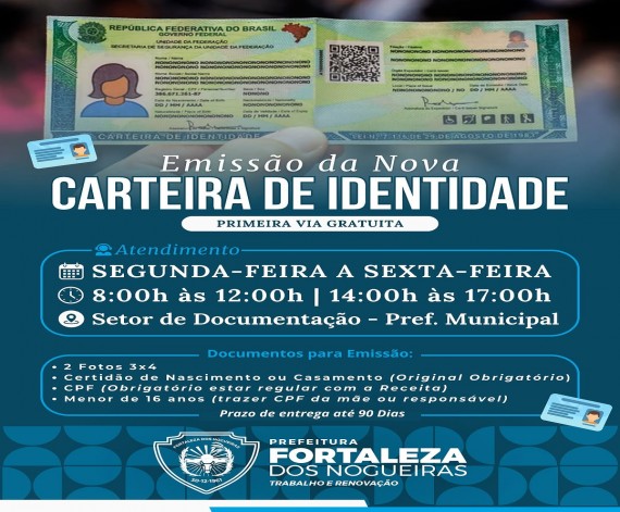 Emissão da Nova Carteira de Identidade em Fortaleza dos Nogueiras!