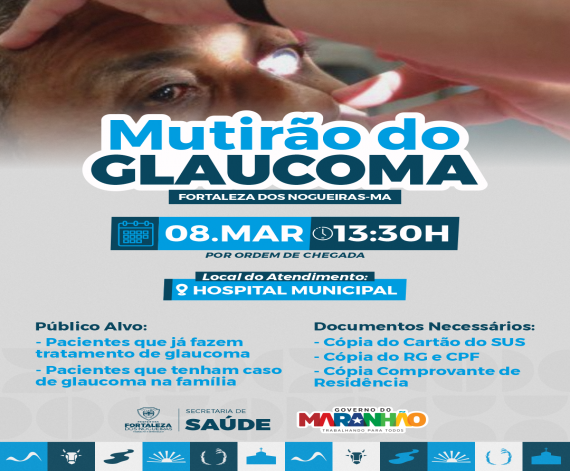 Mutirão do Glaucoma em Fortaleza dos Nogueiras!\nNeste sábado (08)haverá um mutirão para diagnóstico...