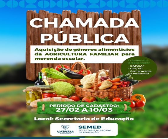 CHAMADA PÚBLICA – AGRICULTURA FAMILIAR\n\nA Prefeitura de Fortaleza dos Nogueiras, por meio da Secre...