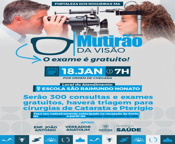 Fortaleza dos Nogueiras terá um grande Mutirão da Visão!\n\nData: 18 de janeiro\nHora: A partir das...