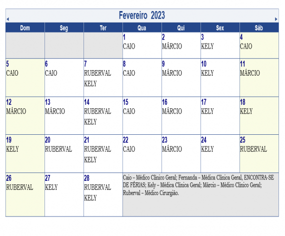 Escala dos plantões médicos do mês de março de 2023: UMCS Ovídia Coelho Nogueira