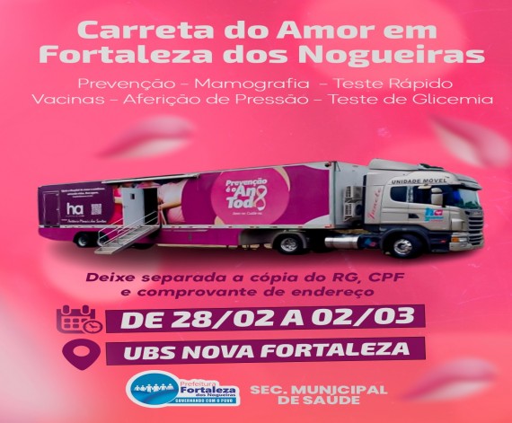 A carreta do Hospital do Amor estará no município de 28/02/ a 02/03 realizando exames\nde Mamografia...