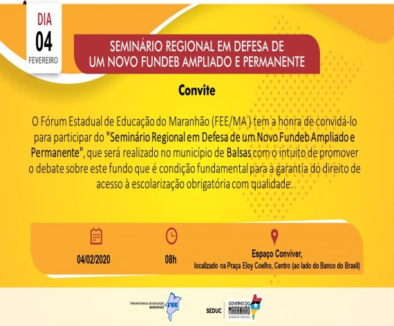 Sera realizado no município de Balsas, no dia 04/02/2020 as 8 hs no Espaço conviver, o Seminário Reg...