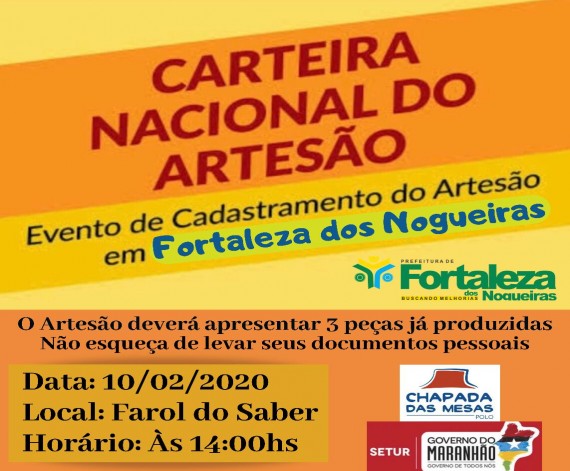 Evento de cadrastramento da carteira nacional do artesão,no dia 10/02/2020 as 14 hs no Farol do Sabe...