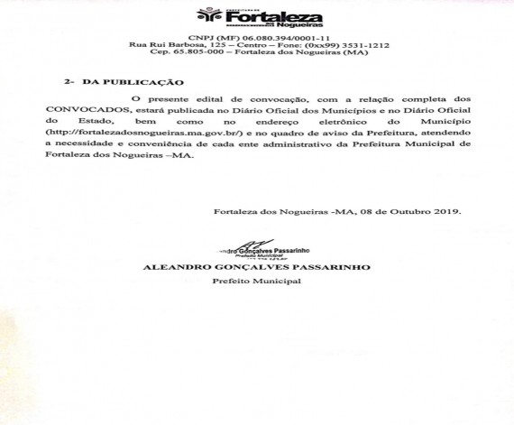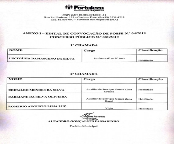 EDITAL DE CONVOCAÇÃO N 04/2019 PARA NOMEAÇÃO E POSSE DO CONCURSO PÚBLICO MUNICIPAL DE FORTALEZA DOS...