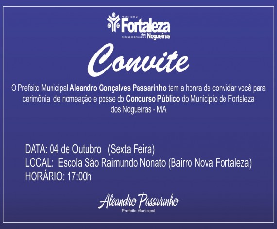 O Prefeito Municipal de Fortaleza dos Nogueiras tem a honra de convidar toda a população para a Ceri...