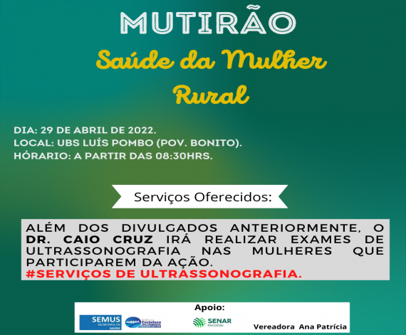 A Prefeitura Municipal, por intermédio da Secretaria Municipal de Saúde em parceria com o Senar e co...
