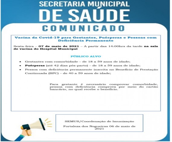 Vacina da Covid-19 para Gestantes, Puérperas e Pessoas com Deficiência Permanente, sendo que, para g...