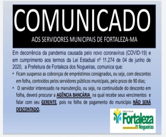 COMUNICADO AOS SERVIDORES MUNICIPAIS DE FORTALEZA DOS NOGUEIRAS.