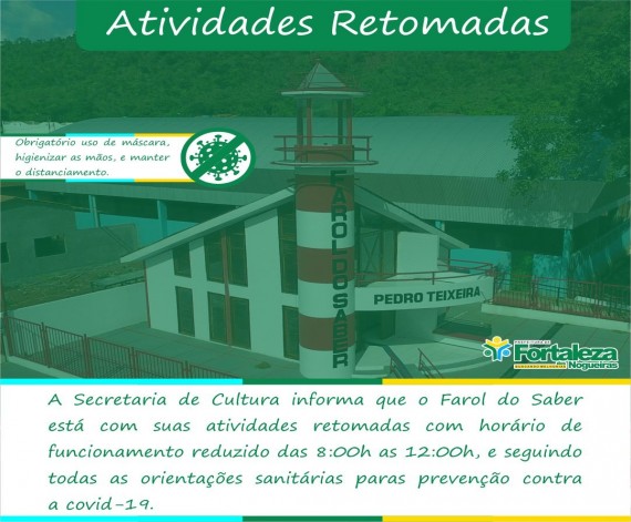 O FAROL DO SABER ESTA COM SUAS ATIVIDADES RETOMADAS , COM HORÁRIO REDUZIDO.