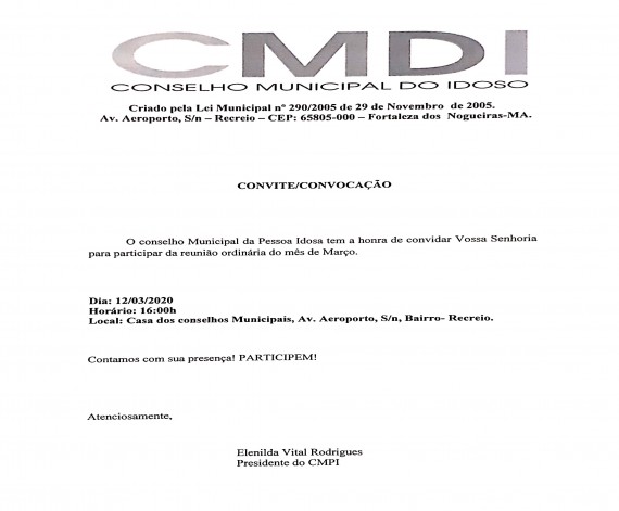 \nO conselho Municipal da Pessoa Idosa tem a honra de convidar Vossa Senhoria para participar da reu...